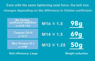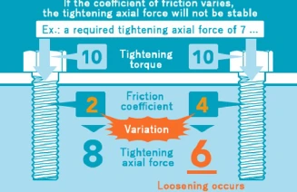 The most effective way to prevent loosening is to stabilize the coefficient of friction and exert an appropriate tightening axial force.