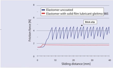 The necessity for lubricating elastomer sealants for assembling aid, as well as the reduction of friction in dynamic processes, is beyond question and in the past this was primarily undertaken by classic lubricants (oils, greases). In recent years dry lubrication with solid film lubricants has acquired increasing significance in this field.