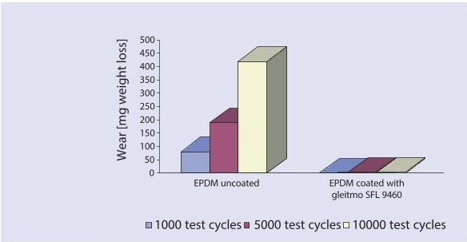 In addition to a reduction of friction a solid film lubricant coating contributes to a significant wear reduction of the parts, which occurs even during the assembling of the sealing elements and can lead to leakages. But even with dynamically stressed components protection against wear results from the use of the solid film lubricant (fig. 3).