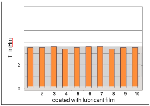 In normal use uncoated metric screws exhibit a very considerable variation in the coefficient of friction. Since the majority of screwing operations are torque-controlled, this gives rise to considerable fluctuations in the tension load, which are unacceptable. With screws coated with HMP films there is only a very slight variation of the coefficient of friction µ, with the result that during installation there are reproducible tension loads.