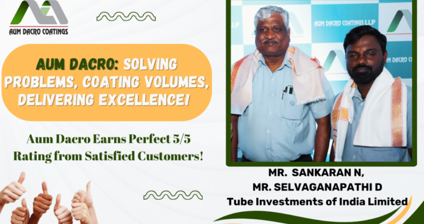 We are thrilled to share an outstanding achievement that marks a significant milestone in our journey of excellence at Aum Dacro Coatings. Recently, we received a PERFECT 5/5 rating from one of our esteemed clients, Tube Investments of India Limited. This glowing testimonial is a reflection of our relentless commitment to quality, innovation, and customer satisfaction.